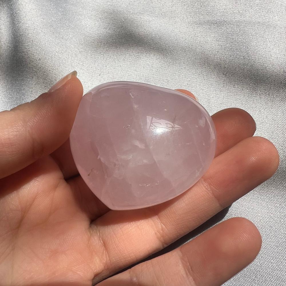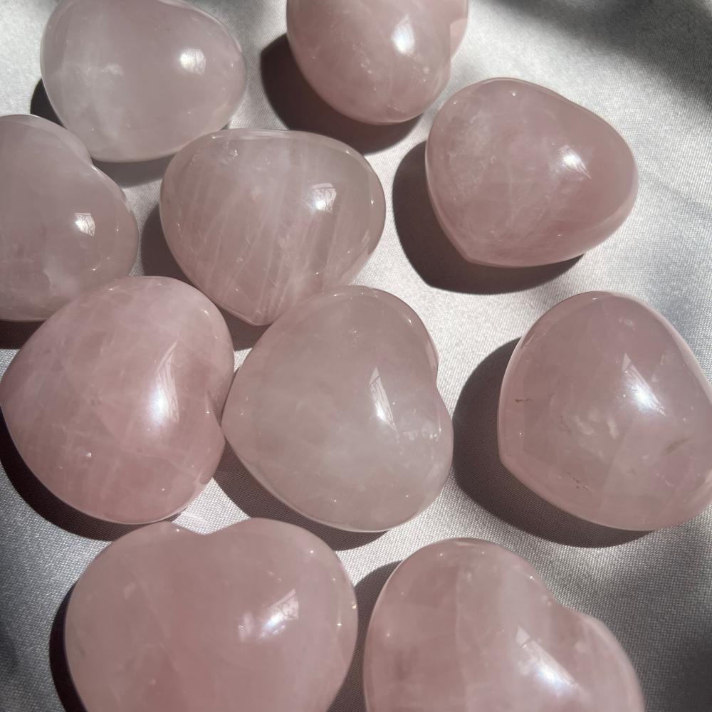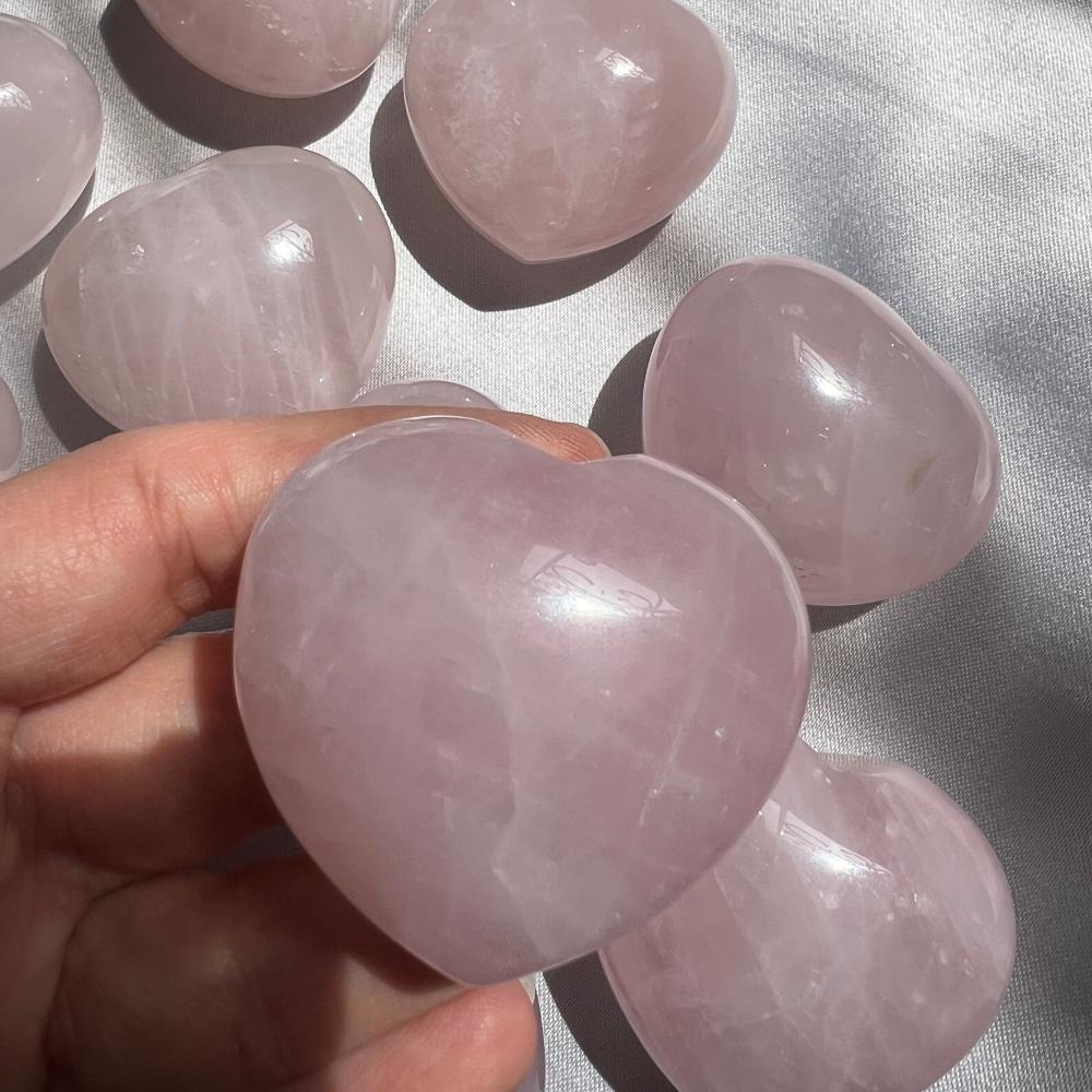 • قلب مصنوع من حجر روز كوارتز بلون وردي ناعم