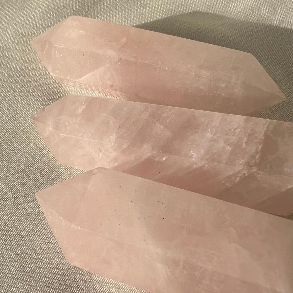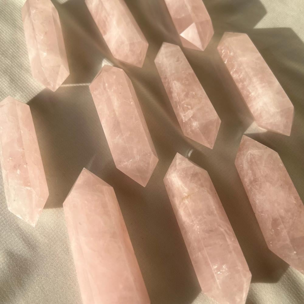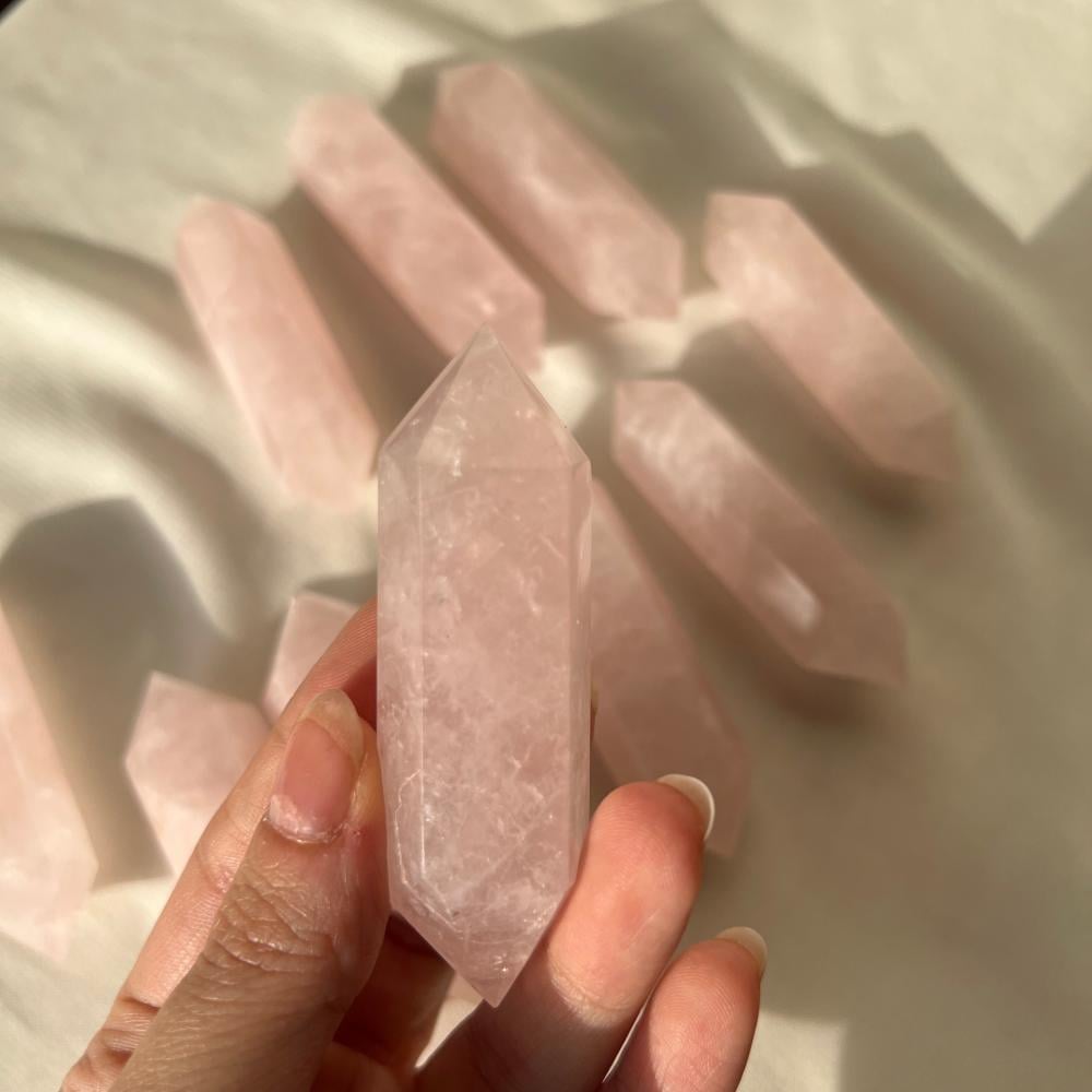 الروز كوارتز ذو الطرفين يتميز بلونه الوردي الناعم الذي يُعتقد أنه يعزز الحب والشفاء العاطفي. هذا الكريستال ذو الطرفين يضيف لمسة من الجمال والهدوء لأي مكان. تم صقله بعناية ليُظهر جماله الطبيعي ويوفر طاقة إيجابية.