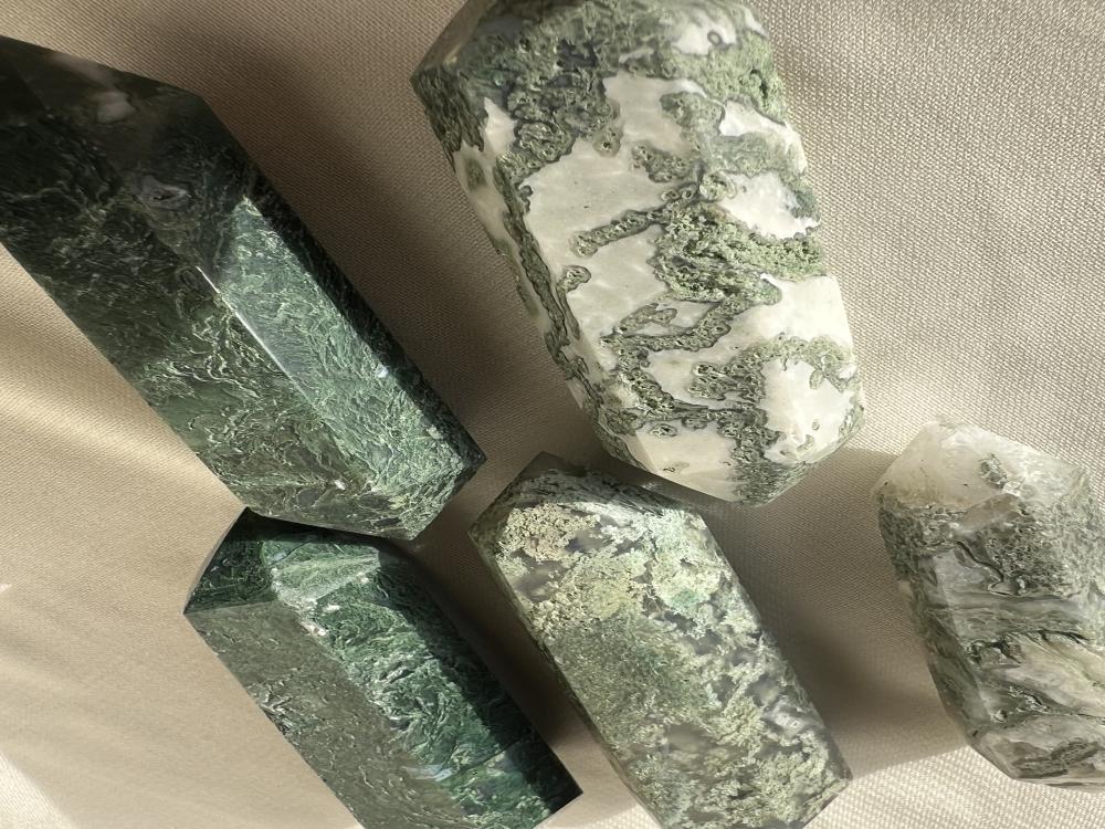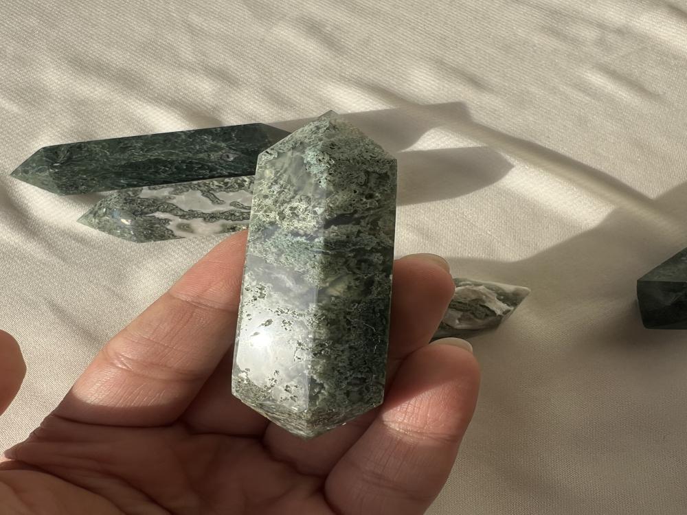 • كريستال عقيق طحلبي ذو طرفين بألوان خضراء طبيعية