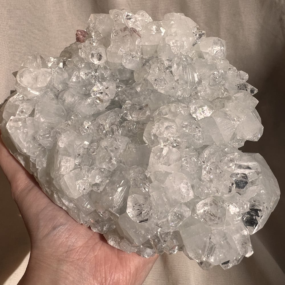 يُعرف بتشكيلاته البلورية الفريدة وألوانه الجميلة، التي تشمل الأبيض والوردي والشفاف.
