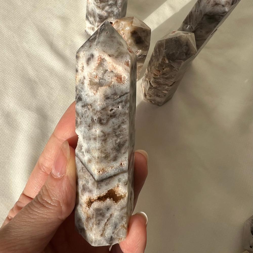 قد تحتوي القطعة على بعض الخدوش أو الحفر البسيطة الناتجة عن التكوين الطبيعي للحجر، مما يمنح كل برج طابعًا فريدًا ومميزًا